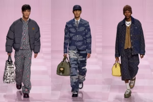 Para el frío, el hombre adepto al damero de Louis Vuitton puede optar por mostrarlo en tonos rosa, con un pullover decorado con pedrería incrustada. En tanto, la cazadora bomber se desmarcó de su versión clásica al no ajustarse a la cintura, flotando suelta.